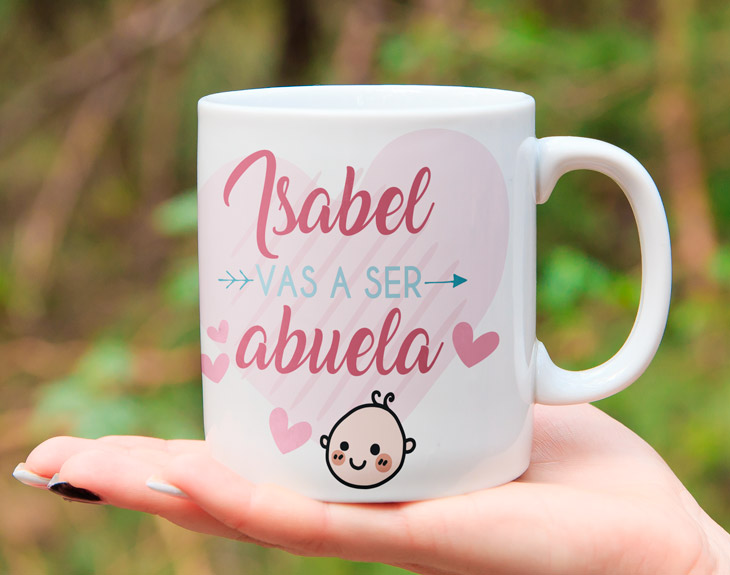¡Comparte la gran noticia con tu familia de la manera más original! Si vas a decirle a tu madre que va a ser abuela, sorpréndela con esta taza original personalizada. ¡Verás la cara de sorpresa que se le queda al abrirla y enterarse de esta manera de que va a ser abuela! Así, cada mañana mientras desayune, esperará con muchísimas ganas y amor a su futuro nieto/a. Personaliza la taza con el nombre de tu madre o de tu suegra y nosotros se la mandamos directamente a su casa. ¡O mándasela a ambas! Puedes comprar hasta 4 tazas seguidas de este modelo, cada una con su propio nombre. Cuantas más compres, ¡más te ahorras! Este es el mejor regalo original para ellas ya que, además de ser un bonito detalle, ¡será un gran recuerdo! Verás qué especial será cuando la abuela pueda tomarse su té o su café con esta preciosa taza personalizada y con su nieto/a por fin a su lado.