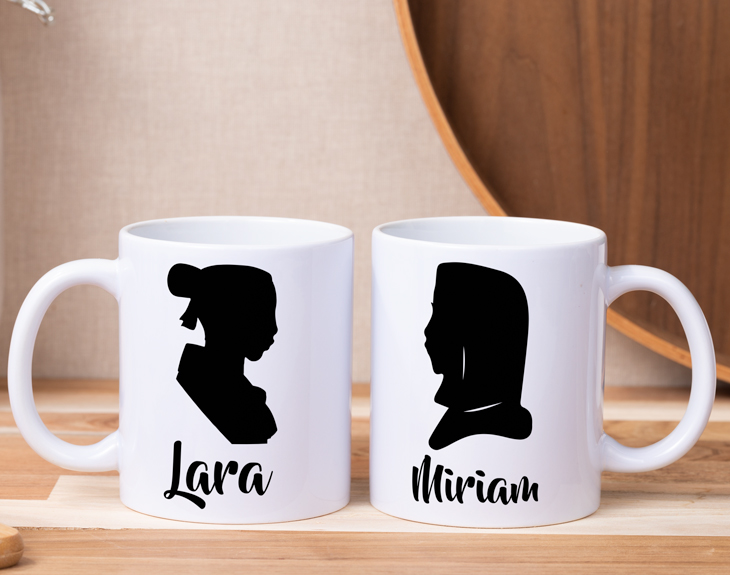 • Tazas para parejas personalizadas (33 cl). • Tarjeta recordatoria.