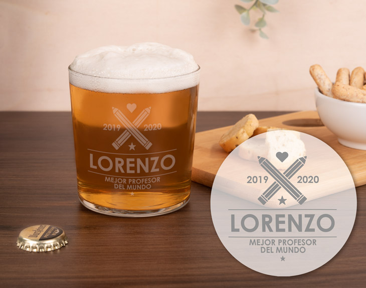 ¿Tienes un profesor que lo ha dado todo a lo largo del curso? Si has tenido la suerte de contar con un maestro único y con el que quieres tener un detalle, este vaso de cerveza personalizado es un regalo que no podrá olvidar. ¡Está hecho solo para los profes que son fans de la cerveza! Un profesor único se merece un regalo por el buen trabajo que ha hecho durante estos complicados meses, por lo que un vaso de cerveza con diseño para profe como este será la mejor sorpresa posible. Está hecho de cristal y cuenta con una capacidad de 36 centilitros. ¡Es perfecta para disfrutar de una cervecita al terminar las horas de clase! Si eres de esos que saben cómo saborear una buena cerveza, ¿por qué no hacerlo junto a tu profesor favorito gracias a este regalo original? En el área de personalización podrás encontrar el diseño del vaso grabado, al que le podrás incluir tanto el nombre del profesor como los años en los que te ha dado clase. ¡Nosotros nos ocuparemos de grabarlo en el vaso! IMPORTANTE: En el caso del vaso elegante, el grabado se realiza más bajo, cercano del borde inferior del vaso, para mantener la consistencia del vaso.