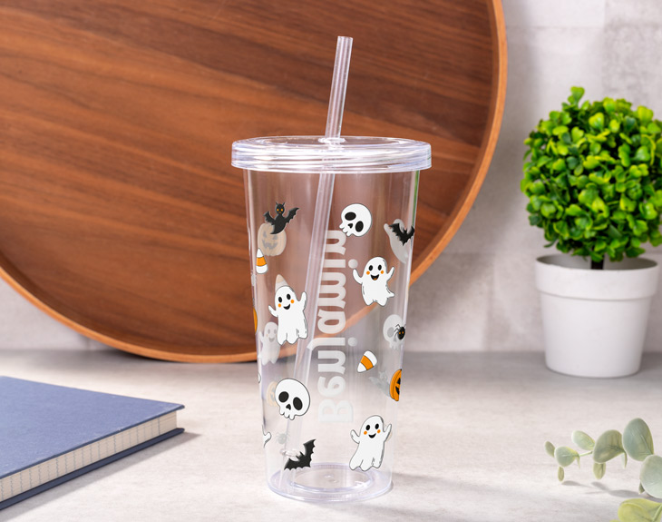 ¿Eres fan del Halloween y de todas las chuches que se reparten ese día? Entonces este vaso de plástico personalizado con chuches es justo lo que necesitas. La combinación perfecta para quienes aman los dulces y no pueden resistirse a un toque divertido y personal. Ideal para fiestas de Halloween, este vaso es un detallazo para sorprender a tus invitados. Viene con un diseño terroríficamente adorable: fantasmas, calabazas espeluznantes, murciélagos y arañas que harán temblar de emoción a cualquiera. Puedes añadir un nombre para que sea único y totalmente personalizado y lo mas guay de todo es que incluye dos bositas de chuches surtidas. Un regalo original con el que conquistarás hasta al monstruo más gruñón. Está fabricado en poliestireno, con tapa hermética y pajita reutilizable, lo que lo convierte en el compañero ideal para llevar donde quieras sin miedo a derrames. Además, ocupa poco espacio y es muy práctico de guardar. Eso sí, para que el diseño y el vaso te duren mucho tiempo, te recomendamos lavarlo a mano con cariño. Y personalizarlo no puede ser más fácil: solo tienes que añadirlo al carrito y escribir el nombre que quieras en el área de diseño. Listo tendrás un vaso con tapa y pajita que no solo es útil, sino que también te ayudará a reducir el uso de plástico. Te encantará tanto que querrás usarlo cada día, cada mes y puede que hasta todo el año. Características del vaso: - Medidas: 17.5 x 10 cm. - Capacidad: 750 ml. - Material del vaso y pajita: Poliestireno. Características de la bolsa de chuches: - Medidas: 22 x 7,5 centímetros. - Peso: 125 gr. aproximado c/u.