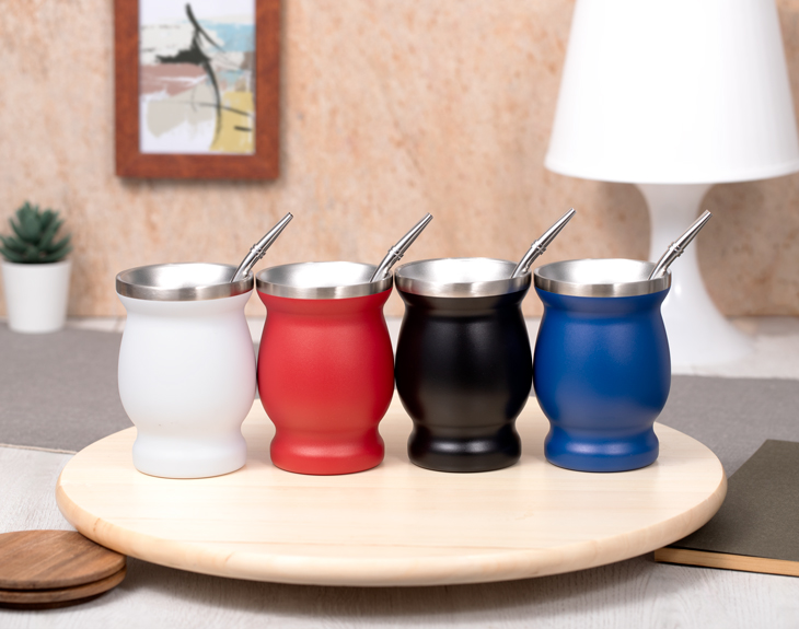 Quien diga que tomar mate es sólo beber una especie de té es que no sabe todo lo que implica. ¡Es todo un ritual reservado únicamente para las personas con más estilo! Por ello, no puedes tener un vaso cualquiera. Dentro de este pack completo para preparar mate, tendrás la calabaza clásica con tu nombre en una estilosa tipografía de escritura a mano. ¡Pura poesía! Al final, algo así es lo que se siente al tomarse un mate bien calentito recién hecho. Tranquilo, si eres inexperto en esta gran tradición argentina, también puedes elaborar fácilmente tu mate. Este set incluye bombilla y cepillo para limpiar. Y lo mejor es que el nombre no es lo único que puedes elegir para crear tu vaso mate personalizado. ¡Tenemos varios colores disponibles sobre los que grabar ese texto! No solo no comprometerá la estructura del vaso, sino que este viene reforzado por una doble pared térmica adaptada a la mano con su forma curva. Así, podrás llevarlo cómodamente en la oficina o en casa sin quemarte. ¡Apenas pesa 150 gramos! Qué mejor idea para regalar a unos amigos argentinos que su propio mate con nombre grabado. Y si son una pareja, ¡haz que cada uno tenga el suyo por muy poco más! Altura: 11 centímetros. Base: 6 centímetros. Filo: 7,5 centímetros. Capacidad: 250 ml. Material: acero inoxidable.