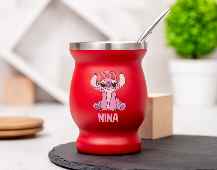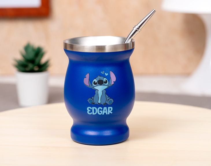 El mate es el compañero más fiel: en las mañanas, en la oficina o simplemente para compartirlo con amigos y familia. Si te encanta esta tradición tan arraigada en Argentina y Uruguay, tenemos algo que te va a enamorar. Este vaso de mate personalizado con nombre es el regalo perfecto... ¡o también un autorregalo ideal para mimarte un poco! Lo que lo hace aún más especial es su diseño “Stitch Cute”, que podrás personalizar con el texto que tú quieras. Ya sea que prefieras a Stitch o a Angel, este vaso quedará genial con tu nombre. Porque, seamos sinceros, después de ver la famosa película, ¿quién no ha quedado enamorado de estos adorables personajes? Este original vaso de mate está fabricado en acero inoxidable y tiene una capacidad de 250 ml, el tamaño ideal para acompañarte en todos tus momentos del día. ¿Y lo mejor? Está disponible en cuatro colores: azul, blanco, negro o rojo. Personalizarlo es muy sencillo: solo tienes que añadir el producto al carrito y, una vez dentro de nuestro diseñador, escribir el texto que desees. Ya sea para un cumpleaños, aniversario o una fecha especial, este mate personalizado es un regalo original perfecto para sorprender a alguien especial… o para darte ese gustito que te mereces. Medidas: 11 cm de alto, 6 cm de base y 7,5 cm de diámetro superior. Importante: incluye bombilla de acero inoxidable y cepillo limpiador.
