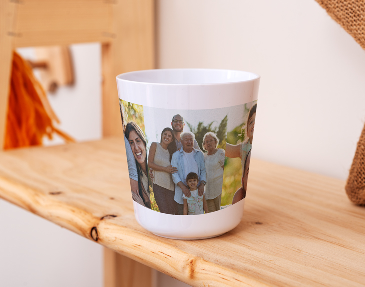 El vasito de plástico personalizado perfecto para pequeños y mayores. Se trata de un divertidísimo vaso en el que puedes añadir vuestra foto favorita, además podréis crear vuestro propio diseño con la ayuda de nuestro diseñador añadiendo stickers, fondos y textos. ¡Toca dejar volar vuestra imaginación! Si vuestros hijos tienen que llevar un vasito para el cole, o poco a poco se están haciendo mayores y están dejando de lado el biberón, este regalo original les encantará. Seguro que están deseando que llegue la hora de la merienda para poder estrenar su nuevo vaso. Además, tiene un tamaño perfecto para que pueda guardarlo en su mochila y llevarlo a todos lados. Hidratarse nunca había sido tan divertido como hasta ahora. ¡Le encantará! Capacidad: 200 ml. Altura del vaso: 8,2 cm. Diámetro: 7,5 cm. Material: plástico. Importante: este vaso de plástico se puede meter en el lavavajillas. Importante: el vaso está hecho de plástico libre de BPA.