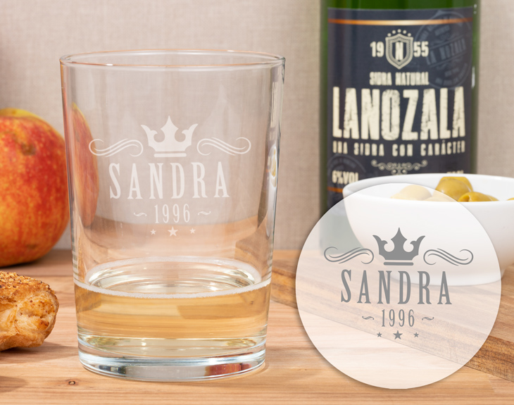 Se acerca ese día, el cumpleaños de ese amigo o amiga tan especial y no tienes ni idea de que regalar. Nosotros te damos esta gran idea, un vaso de sidra con un diseño original y personalizado para desearle lo mejor en su día. En este vaso de sidra personalizado ponemos los años que cumple y su nombre para que se sienta todavía mucho más especial. El cristal de este vaso es muy fino para que cuando escancie la sidra, rompa y se disfrute de la sidra como de verdad se merece. ¿No crees que es un regalo genial? ¡Seguro que le va a encantar!