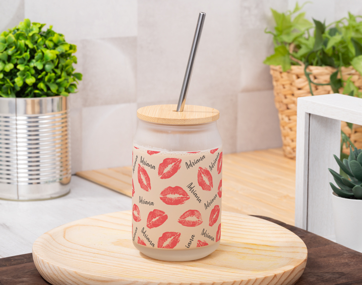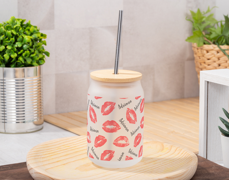 Si cada vez que ves a tu amor quieres darle un montón de besos, este vaso con tapa y pajita personalizado es el detalle perfecto para vosotros. Con un diseño precioso, este vaso conquistará el corazón de tu pareja. Ideal para cualquier ocasión, especialmente en San Valentín o un aniversario, tu pareja disfrutará de su café con este original y práctico vaso. Este vaso también es perfecto para llevar a la oficina y disfrutar de tu bebida favorita en el trabajo. Es cómodo, funcional y, además, cuenta con una tapa para evitar derrames, y una pajita de metal reutilizable. Y lo mejor de todo es que es personalizable. ¡Podrás escribir el nombre de esa persona tan especial! Personalizar este vaso es muy sencillo: solo tienes que acceder a nuestro diseñador y añadir el nombre que quieras. ¡Tendrás el regalo más bonito y útil del mundo! ¡Será un original regalo para enamorados! Características: - Medidas: 12,5 cm x 7,7 cm - Capacidad: 400 ml - Material: cristal mate. - Pajita: acero inoxidable.