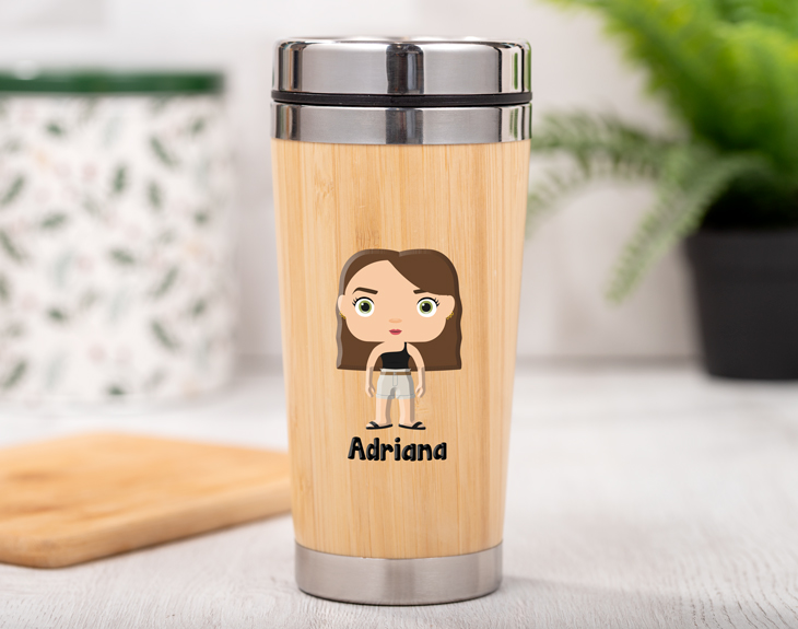 • Vaso termo de bambú personalizado. • Tarjeta recordatoria.