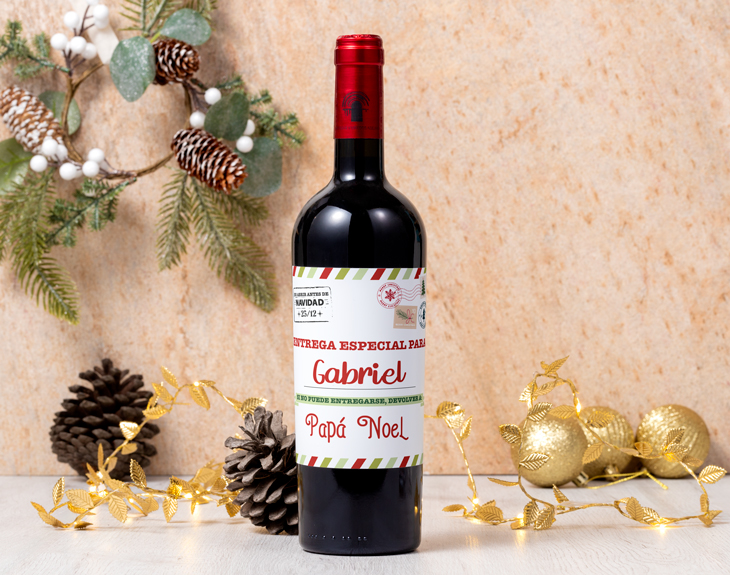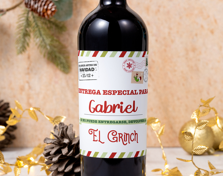 Las Navidades son unas de esas fechas para disfrutar en familia, reencontrarnos con todos los seres queridos, comer y beber y brindar por la magia e ilusión. Si quieres sorprender a tus familiares, tenemos el detalle perfecto para esta ocasión. Se trata de nuestra botella de vino personalizada con diseño "Entrega Especial". La etiqueta, diseñada con motivos navideños, llenará de magia de la Navidad la mesa de Nochebuena, convirtiendo cualquier brindis en un momento inolvidable. Lo mejor que tiene es que es personalizable, podrás escribir el nombre que tú quieras. Sorprende a ese amante del vino con esta botella tan especial. Personaliza esta botella de vino es muy sencillo. El primer paso a seguir consiste en añadir el producto al carrito y entrar al área de personalización. Una vez ahí, ya puedes escribir el nombre que tú quieras. Pronto estará perfecto y listo para regalar. ¡Será un original regalo para Navidad!