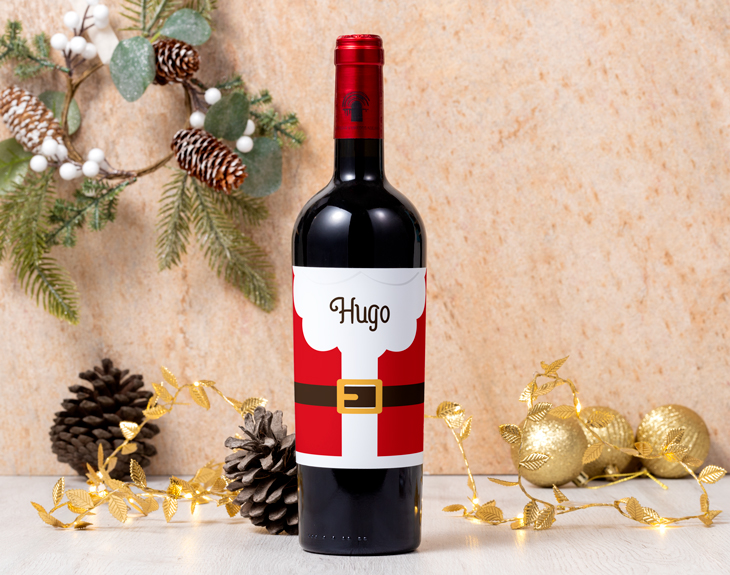 ¡La Navidad ya está aquí! Si quieres añadir un toque festivo a cualquier mesa o celebración, tenemos el detalle perfecto. Se trata de nuestra botella de vino personalizada con etiquetas navideñas, será el regalo ideal para una ocasión como esta. Lo mejor es el estampado navideño tan chulo que tiene y que es personalizable, podrás escribir el nombre que tú quieras. ¡Quedará genial! Ya sea con el alegre diseño de elfo o el clásico traje de Papá Noel, estas botellas capturan el espíritu navideño de una manera divertida y creativa. Personaliza esta botella de vino es muy sencillo. El primer paso a seguir consiste en añadir el producto al carrito y entrar al área de personalización. Una vez ahí, ya puedes escribir el nombre que tú quieras. Pronto estará perfecto y listo para regalar. ¡Será un original regalo para Navidad!