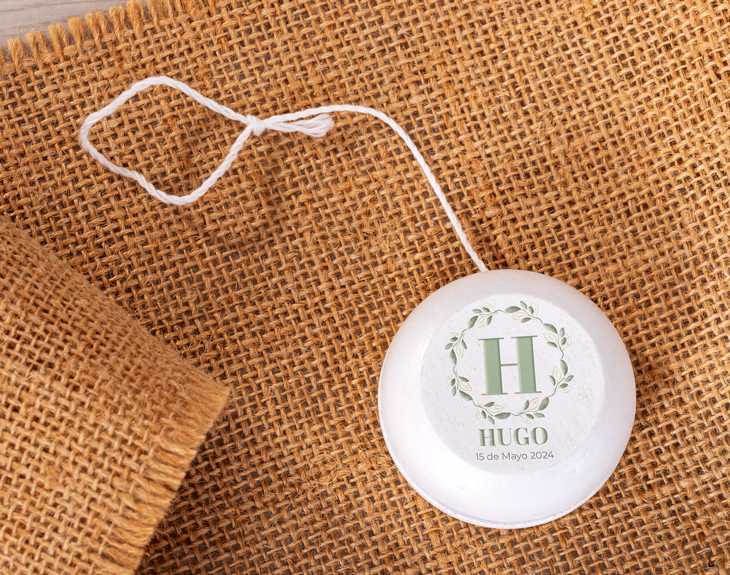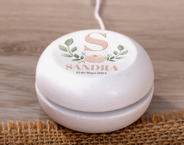 Con la llegada de la Primera Comunión de tu hijo/a también llegan las reuniones familiares. ¿No tendríamos que celebrarlo de una forma única y especial? Por eso contamos con este yo-yo personalizado, un producto hecho para que todo el mundo pueda pasar un buen rato. ¡Un yo-yo de color blanco hecho para todos los públicos! Y es que este yo-yo con diseño de comuniones está pensado para sorprender a los invitados en este día tan señalado para toda la familia. El yo-yo cuenta con un diámetro de 5 centímetros y un grosor de 1,5 centímetros, por lo que siempre lo podrán llevar en el bolsillo... ¡Y recordar el día de la Primera Comunión de tu hijo! Un regalo original para Primera Comunión como este será la clave para sacarles una sonrisa a todos tus invitados. Podrás personalizarlo con el diseño de inicial que quieras entre los dos estilos disponibles. Solo tendrás que escoger el número de yo-yós que quieras y añadirlos al carrito. Después entra en el área de personalización para diseñarlo de la forma que quieras. ¡Clica sobre cada cuadro de texto para escribir lo que quieras! Medidas: 8 centímetros de diámetro. • Consulte precio por cantidades.