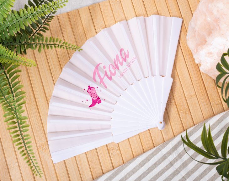 Cualquier novia se merece tener una despedida de soltera que esté a la altura. Por eso, como sus amigas que sois, os toca organizar el que será el evento del año. Y como cada detalle importa, es hora de sorprender a la novia con estos preciosos abanicos personalizados con u ndiseño al más puro estilo cowboy. ¡Son lo más! Si la despedida de soltera se celebra en verano y no queréis morir en el intento, estos originales abanicos os salvarán la vida. Y lo mejor es que vais a poder elegir cuántas unidades queréis y también el color. Así el de la novia será diferente al resto. ¡No pasarán desapercibidos! Antes de personalizar estos abanicos, añádelos al carrito para poder continuar. Una vez dentro de nuestro diseñador, elige entre el típico sombrero o las famosas botas de cowboy y crea los abanicos más chulos del mundo. ¡Será la mejor despedida de soltera! Material: plástico. Medida: 42 x 23 centímetros.