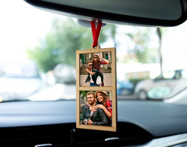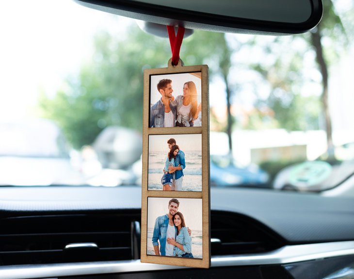 ¿Tú también conoces a esa persona que se acaba de sacar el carnet o ya tiene su primer coche? Si al ser algo nuevo, todavía no está a gusto conduciendo, este producto es ideal para que se relaje un poquito y se sienta más seguro. Se trata de este adorno colgante de madera para el coche, lo podrá colocar en el retrovisor central, cada vez que lo vea se acordará de ti y de lo mucho que lo aprecias. Lo más especial que tiene este marquito de madera, es que se puede personalizar con fotografías. Puedes elegir las que más te gusten o fotos de momentos felices, para que traiga buenos momentos. Y como sabemos que es complicado elegir una sola fotografía, puedes elegir hasta cuatro fotos diferentes. ¡Será un regalo súper original para poner en el coche! Para personalizar este adorno para el coche, lo primero es añadir el producto al carrito y entrar al área de personalización. Lo más difícil será elegir las fotografías, porque todo lo demás es cosa nuestra. ¡Nosotros nos encargamos de que quede perfecto! Tamaño 2 fotos: 11,8 cm largo x 6 cm ancho x 0,7 cm Tamaño 3 fotos: 17,5 cm largo x 6 cm ancho x 0,7 cm Tamaño 4 fotos: 23 cm largo x 6 cm ancho x 0,7 cm