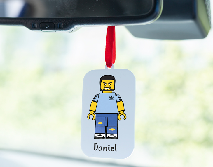 El coche es uno de los sitios donde más tiempo pasamos y es que muchas personas lo usan para ir a muchos sitios diferentes. Al trabajo, a casa, a hacer la compra, al gimnasio, de viaje, al campo, etc... Y como sabemos que te gustaría hacer de tu coche un sitio especial y único, necesitas este adorno colgante de metacrilato que le dará un toque especial a cualquier vehículo. En el momento en el que pongas este accesorio en tu coche, todo el mundo que se suba querrá tener uno igual, porque es súper guay. Pero no solo tú pasas mucho tiempo en el coche, seguro que conoces a alguien que tampoco se baje de él. Y por eso, este original adorno para el coche puede ser el regalo perfecto para esa persona. Ideal para sorprender a alguien en una ocasión o celebración especial, como un cumpleaños. A cualquiera le encantaría tener este adorno para el coche y verse convertido en un auténtico muñeco Lego. Es hora de quitar del retrovisor interno ese ambientador que ya no huele a nada y poner este súper adorno. Si te estás preguntando cómo puedes crear tu propio adorno, no te preocupes porque es muy sencillo. Añade el producto al carrito, entra en el apartado para personalizar tu propio adorno de metacrilato. Crea tu muñeco de Lego desde cero. Añade todos los detalles necesarios para que se parezca a ti o a la persona que va a recibir este original regalo. ¡El accesorio que recorrerá muchos kilómetros contigo! Medidas: 13 x 7 cm.