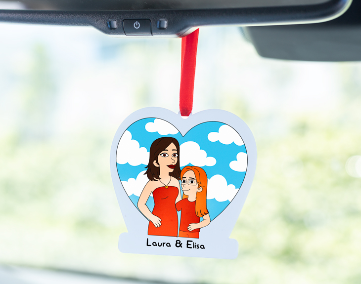 • Adorno de metacrilato para coche. • Tarjeta recordatoria.