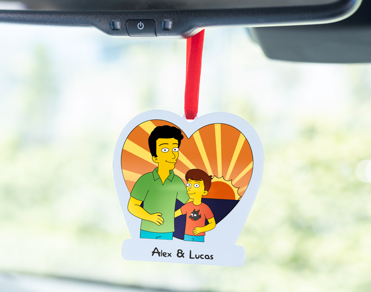 ¿Recuerdas esas frías mañanas de invierno en las que papá te llevaba al coche en cole? ¡Recuérdale los buenos momentos que habéis pasado en el coche familiar gracias a este adorno colgante para el coche! Seguro que le harás sonreír todos los días cuando vayas al trabajo gracias a este metacrilato tan personal. Puede que papá se sepa todas y cada una de las frases míticas de 'Los Simpson', pero seguro que no se esperará este original adorno de metacrilato tan chu-chu-chuli para el coche. ¡Lo podrá colgar en el retrovisor! Este regalo está hecho de una placa de metacrilato que tiene unas medidas de 11,5 x 11 centímetros. ¡Sorpréndele con el regalo más animado por su cumpleaños o el Día del Padre! Si papá no se puede comparar con Homer, Flanders, o cualquier otro famoso padre de la ciudad de Springfield, este regalo original para papá está hecho para él. ¡Podrás crear tanto a papá como a su pequeño/a como unos personajes más de esta conocida serie! En el diseñador de personajes encontrarás todo lo necesario para crearlos a su imagen y semejanza: peinados, ropas, características faciales... ¡Todo lo que les hace únicos! Medidas: 11,5 x 11 cm.