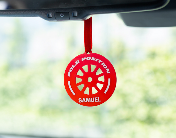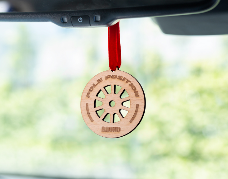 ¿Tienes un amigo fanático de las carreras o un padre que disfruta los fines de semana viendo las mejores escuderías del Gran Premio? ¡Este adorno personalizado para el coche con diseño "Rueda Fórmula 1" es justo lo que necesitas! Perfecto para colgar en el espejo retrovisor, le dará un toque único a su vehículo y hará que cada trayecto se sienta como una carrera de alta velocidad. Este adorno es ideal para los auténticos aficionados al mundo de la Fórmula 1. Y lo mejor de todo: ¡puedes personalizarlo con el nombre o mensaje que más te guste! Escoge entre madera o metacrilato, dos materiales que quedarán genial en cualquier coche y que aportarán ese toque de estilo y pasión por la velocidad. Personalizar este adorno para el retrovisor es muy fácil. Solo tienes que añadir el producto al carrito, entrar al área de personalización y escribir el nombre que desees. ¡Listo, tendrás un regalo original listo para sorprender a cualquier amante de los coches y la Fórmula 1!