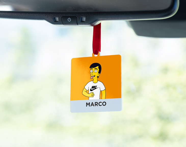 Seguro que tú también conoces a esa persona que es súper fan de los Simpson, si os pasáis el día haciendo referencias... ¡Tenemos algo que le encantará! Se trata de nuestro adorno para coche personalizado con diseño "Simpson Pop". Es ideal para colgarlo en el espejo retrovisor del medio y darle un toque más personal al coche. ¡Quedará genial! Está pensado para los súper fans de los Simpson. ¡Este adorno es personalizable! Podrás crear a este avatar Simpson como tú quieras. Hay un montón de rasgos y accesorios diferentes para poder representar a a perfección. Este adorno se convertirá en el regalo perfecto. Personalizar este adorno para retrovisor es muy sencillo. El primer paso a seguir consiste en añadir el producto al carrito y entrar al área de personalización. Una vez ahí, ya puedes crear a este avatar Simpson desde cero. Pronto estará perfecto y listo para regalar. ¡Será un original regalo para fans de los Simpson!