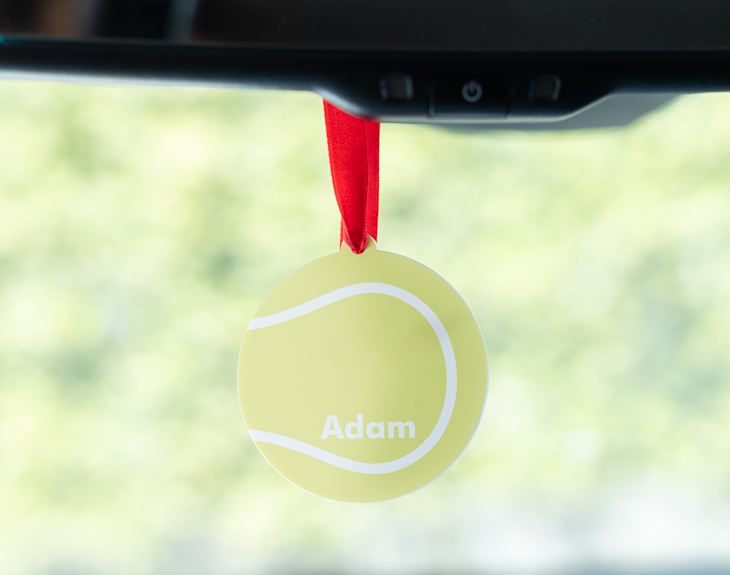 El tenis es un deporte divertidísimo, es perfecto para jugar en buena compañía. Si quieres sorprender a tu compi de tenis... ¡Tenemos la mejor opción! Se trata de nuestro adorno para coche personalizado con diseño "Tenis". Es ideal para colgarlo en el espejo retrovisor del medio. ¡Quedará genial! Este adorno se puede convertir en un original regalo para cualquier ocasión, como un cumpleaños o incluso un amigo invisible. Además, lo mejor es que es personalizable, podrás escribir el nombre de ese jugador de tenis. ¡Es genial! Le dará un toque mucho más personal y original a tu coche. Personalizar este adorno para retrovisor es muy sencillo. El primer paso a seguir consiste en añadir el producto al carrito y entrar al área de personalización. Una vez ahí, ya puedes escribir el nombre que tú quieras. Pronto estará perfecto y listo para regalar. ¡Será un original regalo para amantes del tenis!