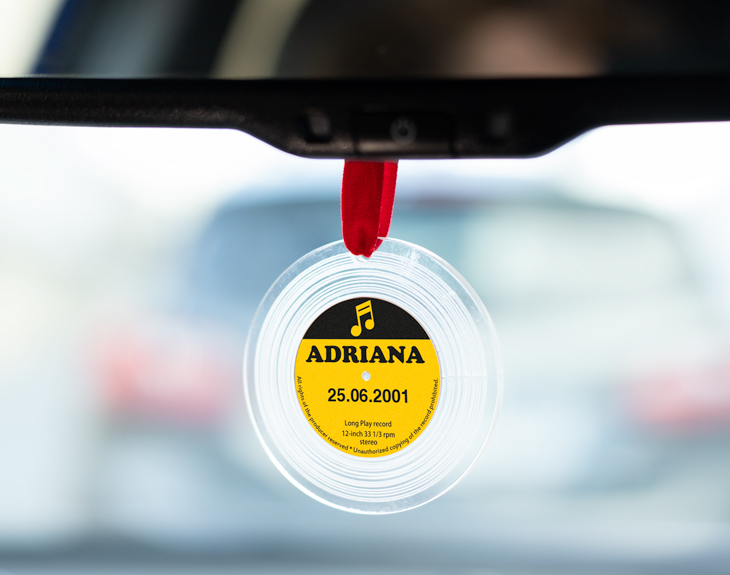 Todos conocemos a esa persona que adora conducir y se pasa horas y horas en el coche. No importa los corto o largo que sea el trayecto o vaya donde vaya que siempre escucha algo de música. Sorprende a esa persona con un detallito único que le encantará: ¡nuestro adorno para coche personalizado! Este pequeño vinilo hará honor a esa persona que ama la música y la escucha en cualquier lugar. ¡Es lo más! Con este original regalo conseguirás dejar sin palabras a tu conductor/a favorito. Este adorno de metacrilato tan chulo quedará genial colgado en el retrovisor de la parte central del coche, así todas las personas que se suban a tu coche podrán verlo. ¡Seguro que quieren tener uno igual! La mejor parte es personalizar este adorno para coche porque es súper fácil. Añade el producto al carrito y entra en el área de personalización. Desde ahí, podrás elegir qué diseño te gusta más y también si quieres añadir color al metacrilato. Después, finaliza el diseño con el texto que quieras y listo. ¡No habrá un regalo mejor que este! Diámetro 6,5 cm.