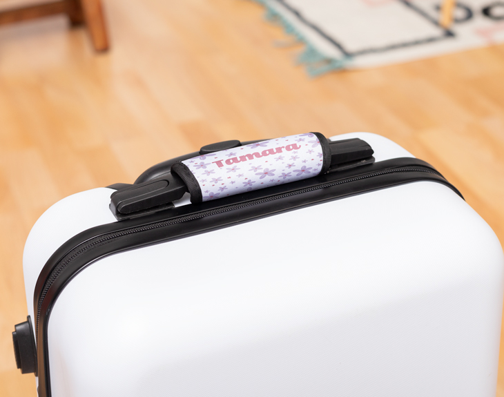 • Agarre para maletas personalizado. • Tarjeta Recordatoria.