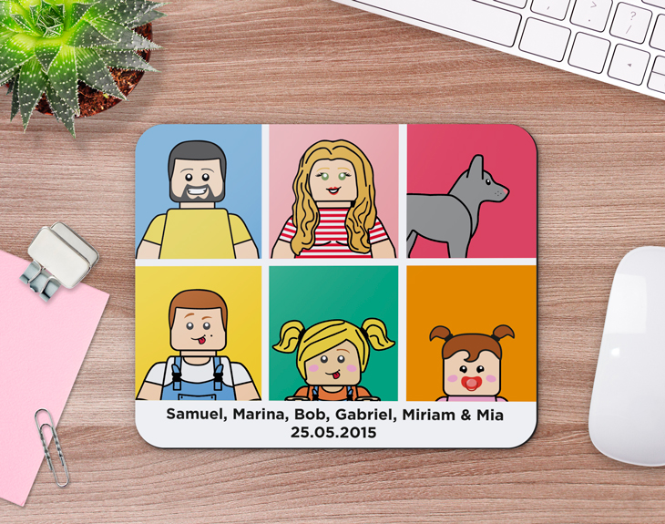 ¿La alfombrilla para tu ordenador está muy desgastada y quieres una nueva? Esta alfombrilla Lego pop es la solución. O, por otro lado, si quieres tener un detalle con ese amigo o familiar que se pasa el día pegado a una pantalla, sin duda, este sería un regalo súper original que le encantará. Este producto tiene la posibilidad de que se puede personalizar, tú diseñas tu propio personaje Lego y nosotros lo plasmamos en la alfombrilla. Puedes crear mínimo un personaje y seis de máximo. Así, si la vas a utilizar para el ordenador de casa, puedes diseñar un lego por cada miembro de tu familia o si la vas a usar en el trabajo, puedes crear a tus compañeros de curro. ¡Quedará chulísimo! Tienes para elegir entre un montón de rasgos y accesorios, seguro que encuentras los que te representen. Esta alfombrilla Lego Pop te acompañará cada vez que uses el ordenador, de esta manera, hacer trabajos para universidad o simplemente trabajar, se convertirá en una actividad mucho más amena. Personalizar esta alfombrilla es algo muy sencillo, solo tienes que añadir el producto al carrito y entrar al área de personalización. Después creas los personajes Lego que quieras y todo lo demás es cosa nuestra. ¡Pronto podrás regalar esta alfombrilla tan chula!