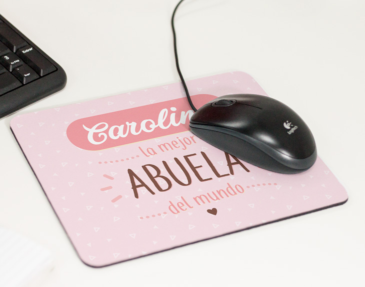 Si tu abuela es la más moderna del mundo y ya busca sus dudas en internet o juega con sus amigas de manera online, esta alfombrilla para ratón personalizada es perfecta para darle una sorpresa. Solo tendrás que personalizarla con su nombre, y la tendrás lista para sacarle esa sonrisa que tanto te gusta de ella. Tener una abuela así de moderna y joven es uno de los mayores regalos que te puede hacer la vida. Por lo que aprovéchalo, y disfruta de abuela y regalos originales. Elige la forma de la alfombrilla que quieras, y la personalizaremos al 100% para que sea una sorpresa inolvidable para ella. Material: tela. Tenemos formas diferentes de alfombrillas para ratón: - Rectangular: 19 cm x 23 cm. - Circular: 21 cm x 21 cm.
