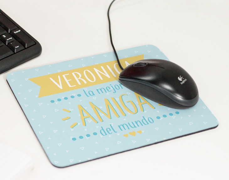 ¿Tienes una amiga que no para de escribirte por skype? ¿En vez de estar pegada al móvil, está pegada al ordenador? ¿Utiliza el portátil para absolutamente todo? Esta alfombrilla para ratón personalizada es perfecta para sorprenderle cuando menos se lo espere. Para personalizarla al máximo solo tendrás que decirnos su nombre. Lo añadiremos al diseño y quedará una alfombrilla para ratón muy divertida. Además, contamos con tres formas súper originales que le harán sentirse cómoda mientras trabaja o ve sus series. Aprovecha la oportunidad y dile a tu amiga que es la mejor del mundo y que la quieres muchísimo. Material: tela. Tenemos formas diferentes de alfombrillas para ratón: - Rectangular: 19 cm x 23 cm. - Circular: 21 cm x 21 cm.