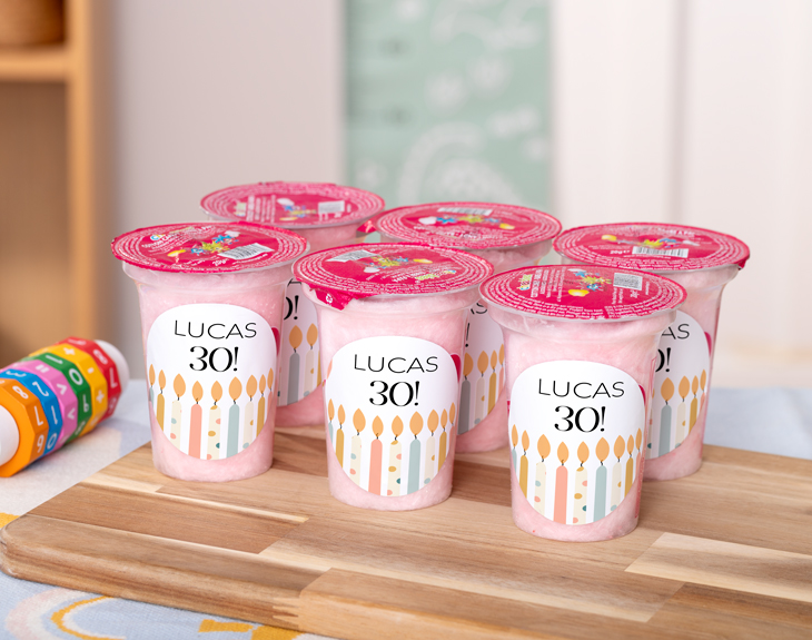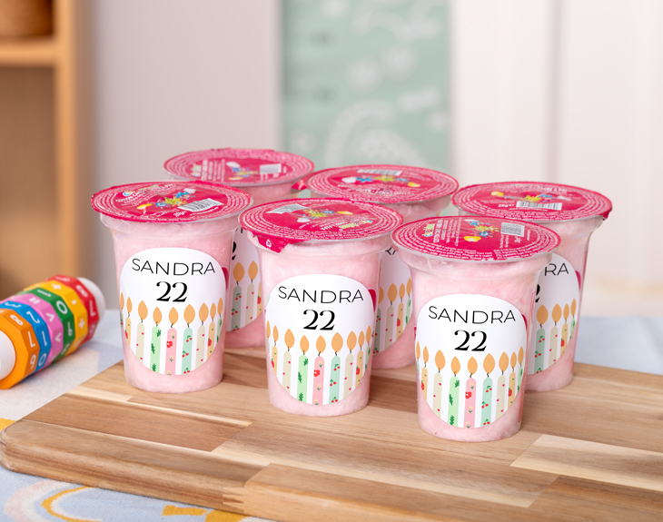 ¡Tenemos algo que no puede faltar en ninguna fiesta de cumpleaños! Si quieres dejar a todos tus invitados con la boca abierta, solo necesitas estos deliciosos botes de algodón de azúcar personalizados. Son ideales para aportar un toque dulce a este día tan especial y asegurarte de que todos tus amigos y familia disfrutan de este rico dulce, porque tendrán un bote para cada uno. Si quieres endulzar tu fiesta de cumple, con este original detalle seguro que lo consigues. Podrás personalizarlos con este precioso diseño de velitas, para que todo el mundo sepa que es tu cumple. Además, tendrás dos opciones: elegir que todos los botes sean iguales o que cada uno tenga un diseño diferente. ¡Tú eliges! Llega el momento de personalizar el algodón de azúcar. Añade el producto al carrito, eligiendo cuántas unidades quieres. Después, en el área de personalización podrás elegir el diseño que más te guste y añadir el texto que tú quieras. ¡Será un recuerdo súper dulce e inolvidable!