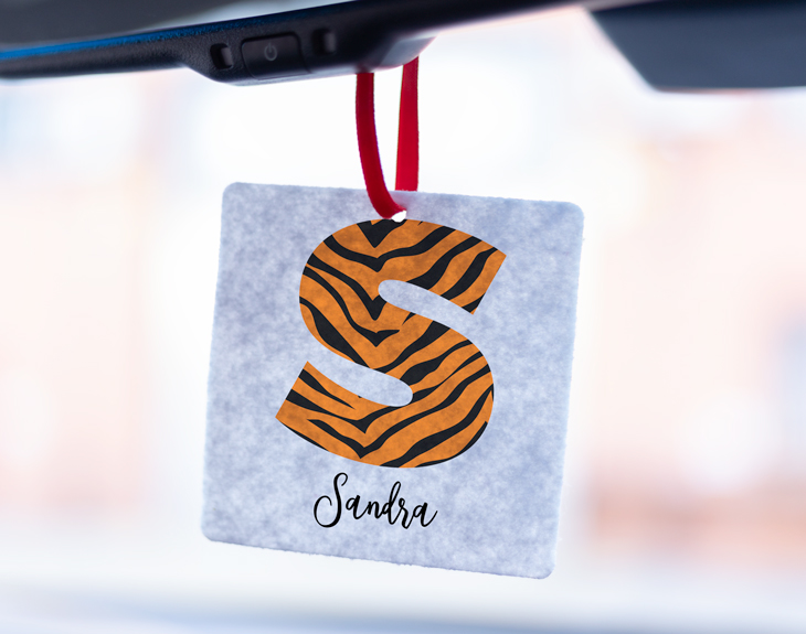 Transforma cada viaje en una experiencia única con este ambientador para coche personalizado. Este producto es ideal, no sólo decorará tu vehículo sino que también llenará cada rincón con su aroma de rosas frescas. Si tienes un amigo/a que se acaba de comprar su primer coche, este es un regalo súper original. ¡Se convertirá en su mejor compañero de viaje! Y lo más especial de todo, es que es personalizable. Sin duda, este original diseño de este ambientador conquistará los corazones más salvajes. Está formado por una inicial en grande con nuestros estampado Animal Print, puedes elegir entre varias opciones, seguro que encuentras el espíritu animal que te represente. Además, debajo de la inicial puedes escribir tu nombre. Y te preguntarás… ¿Cómo se personaliza este ambientador? Lo primero es añadir el producto al carrito y entrar al área de personalización. Una vez ahí, podrás escribir el nombre que quieras y elegir la inicial. Terminas la compra y nosotros no encargamos de quede listo para regalar. Medidas: 10 x 10 cm. Material: fieltro.