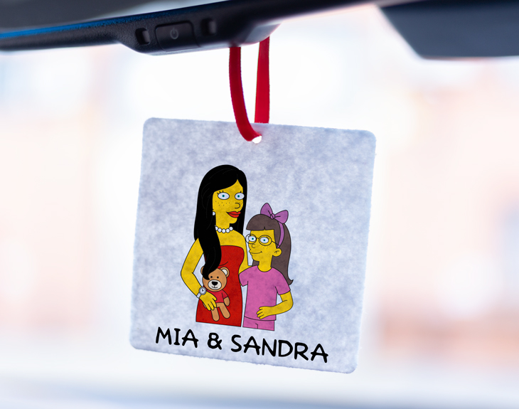 Todas las madres son lo mejor. Siempre nos están cuidando, están al tanto de todo y nos llevan a todos los lados. ¿Acaso hay algo mejor que los míticos viajes en coche con tu madre? Está claro que no. Vivir ese momento tan guay en el que estáis riendo y cantando vuestras canciones favoritas cuando suenan en la radio del coche, no tiene precio. Sin duda, este ambientador de fieltro para coches, es un detalle súper especial. ¡Inundará con su aroma a rosas frescas cada rincón del vehículo! Si, además, sois súper fans de los Simpson y os pasáis el día entero haciendo referencias, este ambientador es el regalo perfecto. Ideal para el día de la Madre, para su cumpleaños, para regalar en alguna ocasión especial o, simplemente por ser la mejor madre del mundo. Lo mejor es que son personalizables. Es decir, tú diseñas a estos personajes Simpson como tú quieras. Imagina lo contenta que se pondrá cuando reciba este detalle tan bonito, ¡le encantará! Para personalizarlo, lo primero es añadir el producto al carrito y entrar en el diseñador. Una vez ahí, podrás crear estos avatares desde cero, ¡ya verás qué divertido! Medidas: 10 x 10 cm. Material: fieltro.