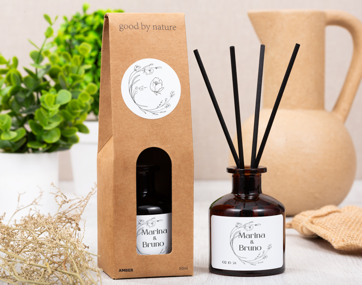 ¿Sabías que el aroma a ámbar se suele relacionar con el hogar y la calidez? Si justamente eso significa esa persona para ti, este ambientador personalizado tiene su nombre, y es que, no se nos ocurre una manera más especial y original de demostrarle lo importante que es en tu vida. Un regalo único y cargado de personalidad para sorprender a esa persona que te hace sentir siempre en casa. No solamente se trata de un objeto de decoración muy elegante y minimalista que quedará perfecto en cualquier rincón, si no que además lo personalizaremos con vuestros nombres y esa fecha que marcó un antes y un después, ya sea el día que os conocisteis, vuestra boda o la primera noche juntos en vuestro nuevo hogar. Tiene un olor dulce y con notas amaderados que resulta super acogedor, aunque lo mejor es que una vez terminado podéis mantenerlo para darle un toque muy personal a vuestro rincón favorito. No busques más, por fin has encontrado el regalo perfecto para sorprender a tu otra mitad en vuestro aniversario o el día de su cumpleaños. En la caja incluiremos una pegatina a juego con el diseño del mikado, y es que, todos sabemos que tan importante es la presentación como el regalo. ¡Detalles como estos son los que marcan la diferencia! Medidas del mikado (incluyendo los palitos): 15cm x 5 cm Capacidad: 50ml