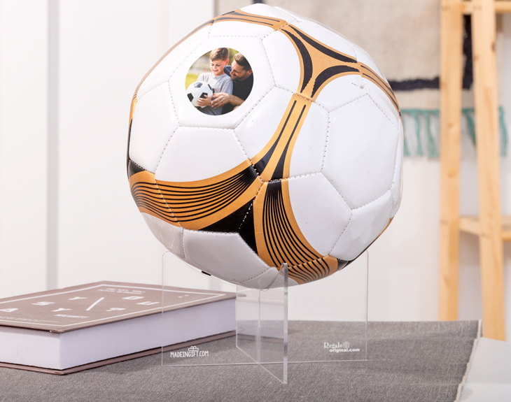 El balón de fútbol personalizado para los campeones de la casa. Si tu hijo o tu hija es una fanática del fútbol, este balón está hecho para ella. Solo tendrás que elegir una foto especial para personalizar el balón. ¡También puedes añadir un texto o el mensaje que quieras! Aprovecha el momento para darle una sorpresa al futbolero o futbolera de la casa. Material: PVC Grosor del PVC: 1,6 mm Medidas: 25cm Peso: 260 - 280 gramos