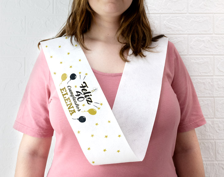 ¿Acaso hay algo mejor que las fiestas de cumpleaños? Si estáis preparando una sorpresa a alguien muy especial, no puede faltar una banda personalizada de cumple como esta. Con un diseño en negro y dorado de lo más elegante, la personalizaremos con su nombre y la edad que cumple, así podrá guardar para siempre un recuerdo único de ese día tan mágico. Hay cumpleaños que pasan a la historia y se recuerdan para siempre, aunque normalmente suelen coincidir con cifras especiales como los dieciocho, los treinta o los cuarenta, ¿quién ha dicho que no se pueda hacer una super fiesta para celebrar cualquier edad? No hay nada más bonito que soplar las velas junto a los amigos y familia, y lo más importante, comer muchísima tarta. ¡Qué vivan los cumpleaños! Por eso, si conoces a alguien que adora celebrar sus cumpleaños por todo lo alto, este regalo original le encantará. Así todo el mundo sabrá que es su día y podrá hacerse millones de fotos con su beca personalizada. Haz que se sienta como lo que es, ¡el auténtico o la auténtica protagonista de ese día! Medida: 140 x 9,5 centímetros. Material: Poliéster