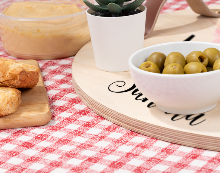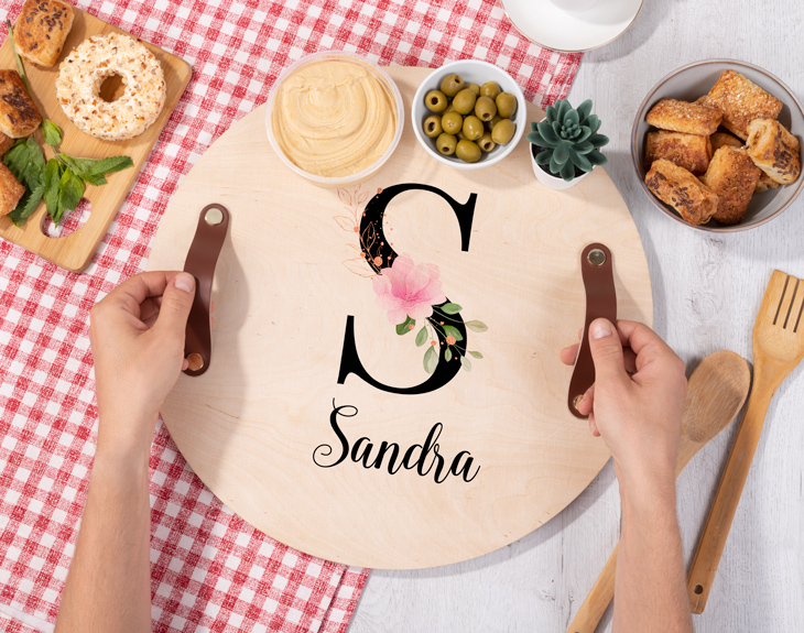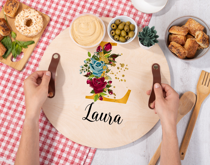Siempre hay que cuidar de nuestros invitados al máximo. Ofrecerles algo de comer o beber es algo obligatorio para cualquier buen anfitrión. ¿Y por qué no hacerlo de la forma más elegante posible? Esta bandeja de madera personalizada está pensada para hacer que cualquier quedada con amigos o familiares sea de lo más elegante. No hay nada mejor que disfrutar de unas riquísimas patatas fritas junto a tu cerveza favorita. ¡Esto podrá ir encima de esta bandeja redonda con diseño de iniciales botánicas! Sus dos asas hacen que sea de lo más fácil llevarla de un lado para otro. Además, esta madera cuenta con un diámetro de 41,5 centímetros, por lo que cabrán todos los aperitivos y bebidas de tus invitados. Y es que este regalo original está hecho para todas esas personas que quieren ser los mejores anfitriones. ¡Podrás personalizar esta bandeja con la inicial botánica que más te guste! Solo tendrás que añadir el producto al carrito y entrar en el diseñador, donde encontrarás los diferentes estilos de letras botánicas, con colores que van desde el dorado hasta el rosa. ¡Escoge la inicial de esa persona especial y crea un regalo único! Medida: 41,5 centímetros de diámetro. Material: madera. Importante: Las maderas tienen vetas y estas quedan reflejadas en la imagen.