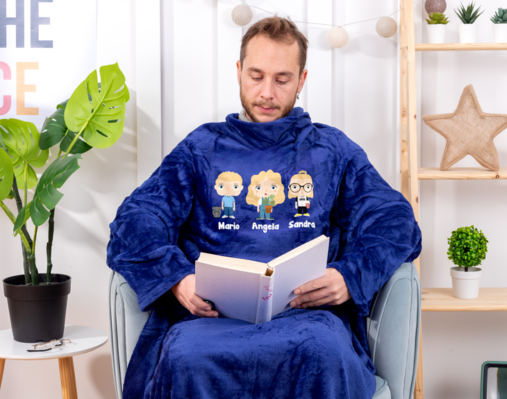 ¿Alguna vez te has probado una batamanta? ¡Sí, si has leído bien! La batamanta, como su nombre indica, es la mezcla perfecta entre una bata y una manta. ¡La combinación perfecta! Es ideal para la época de invierno, en la que bajan las temperaturas, es súper suave y calentita. Pero, sin duda, lo mejor que tiene es que es personalizable, podrás crear a los avatares de estampado como tú quieras. Hay un montón de accesorios y rasgos diferentes para elegir. ¡Podrás crear a toda tu familia ponerla en el diseño! Se convertirá en el regalo perfecto para estas Navidades. Personalizar esta batamanta es muy sencillo. El primer paso a seguir consiste en añadir el producto al carrito y entrar al área de personalización. Una vez ahí, ya puedes crear a este avatar como tú quieras. Pronto estará perfecto y listo para regalar. ¡Será un original regalo para Navidad! Este producto es de talla única. Material: 100% poliéster. ¿Qué es una batamanta? Es una prenda de abrigo y cuerpo entero abierta por detrás para estar en casa. Cuenta con las mangas y cuello típicos de una bata para poder llevarla cómodamente sin perder movilidad. Pero además, cuenta con el tacto acolchado y la amplitud de una manta, por lo que puede echarse cómodamente por encima para arroparse en el sofá al tener la zona de la espalda al descubierto y cubrir en profundidad la parte delantera del cuerpo.
