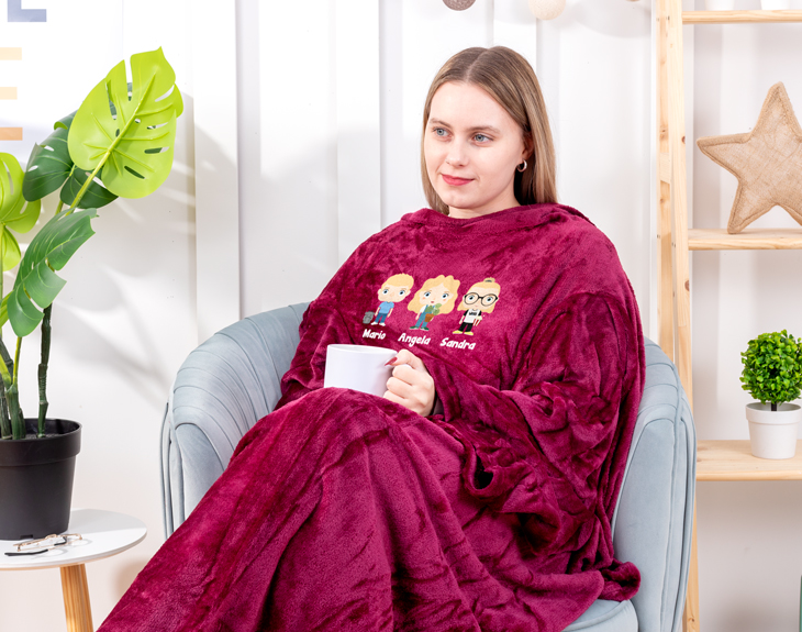¡El invierno ya está aquí! Por eso, ahora que bajan las temperaturas, hay que estar súper preparado... si no quieres volver a pasar frío en Navidades, nuestra batamanta granate personalizada con diseño "Familia Tinok" es ideal para estas fechas tan frías. Este producto es la mezcla perfecta entre una bata y una manta, es perfecto para mantener el calor cuando estamos descansando en el sofá tranquilamente. Y lo mejor que tiene es que es personalizable, podrás crear a este avatar como tú quieras. Hay un montón de rasgos y accesorios para elegir. ¡Quedará genial! Personalizar esta batamanta es muy sencillo. El primer paso a seguir consiste en añadir el producto al carrito y entrar al área de personalización. Una vez ahí, ya puedes crear a este avatar como tú quieras. Pronto estará perfecto y listo para regalar. ¡Será un original regalo para Navidad! Este producto es de talla única. Material: 100% poliéster. ¿Qué es una batamanta? Es una prenda de abrigo y cuerpo entero abierta por detrás para estar en casa. Cuenta con las mangas y cuello típicos de una bata para poder llevarla cómodamente sin perder movilidad. Pero además, cuenta con el tacto acolchado y la amplitud de una manta, por lo que puede echarse cómodamente por encima para arroparse en el sofá al tener la zona de la espalda al descubierto y cubrir en profundidad la parte delantera del cuerpo.
