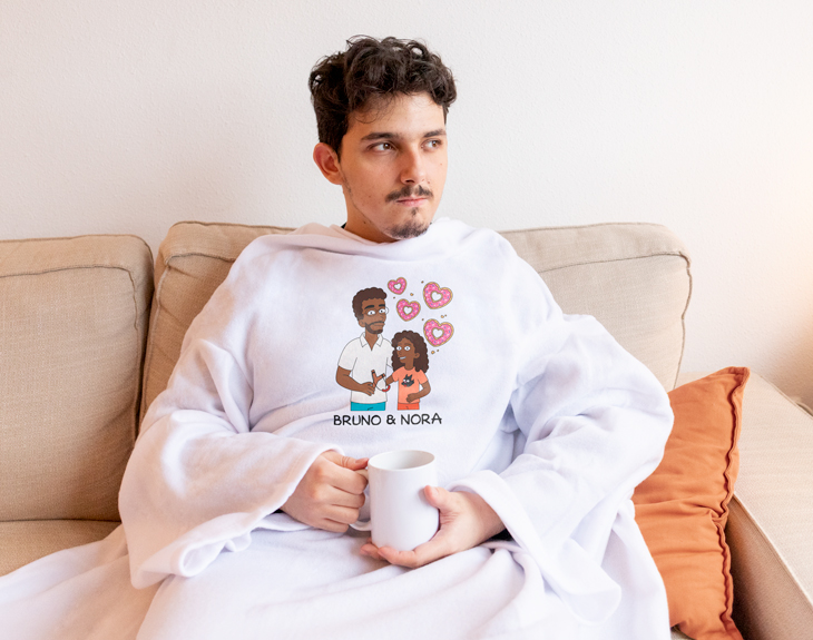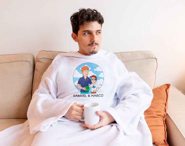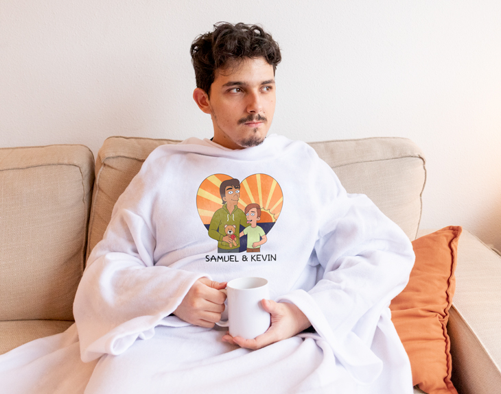 ¿Te acuerdas de esas tardes enteras viendo dibujos animados con tu padre en el sofá? ¿Acaso existe mejor plan? Si siempre que te acuerdas, te saca una sonrisa al recordar esos momentos tan felices en los que os reíais un montón. Sin duda, esta batamanta personalizada es un regalo perfecto para demostrarle que es el mejor padre del mundo. Ideal para regalarle por su cumpleaños, por el Día del Padre o en alguna ocasión especial. Si además tu padre cuando llega de trabajar después de una dura jornada laboral, siempre se echa la siesta, con esta batamanta estará bien arropadito y calentito para que no se resfríe en invierno. Lo más especial de todo es que es personalizable. Esto quiere decir que tú diseñas a estos personajes Cartoon. Imagina la ilusión que le hará a tu padre veros reflejados en dibujos animados en esta batamanta, ¡no podrá contener la sonrisa! Y te preguntarás… ¿Cómo se personaliza esta batamanta? El primer paso a seguir es añadir el producto al carrito y entrar al área de personalización. Una vez dentro del diseñador, podrás crear a tus avatares desde cero. Tienes un montón de rasgos y accesorios distintos, seguro que encuentras los que os representen. Este producto es de talla única. Material: poliéster. ¿Qué es una batamanta? Es una prenda de abrigo y cuerpo entero abierta por detrás para estar en casa. Cuenta con las mangas y cuello típicos de una bata para poder llevarla cómodamente sin perder movilidad. Pero además, cuenta con el tacto acolchado y la amplitud de una manta, por lo que puede echarse cómodamente por encima para arroparse en el sofá al tener la zona de la espalda al descubierto y cubrir en profundidad la parte delantera del cuerpo.