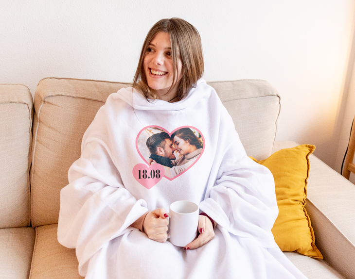 Se acerca el mes en el que celebramos el amor y la amistad, el querer a las personas que tenemos alrededor y que forman parte de nuestra vida. Porque querer a alguien siempre es un sentimiento muy bonito, sea de la manera que sea. Por eso, en esta época del año, nos apetece hacer un regalo especial a esa persona tan importante. Y como sabemos que el invierno todavía sigue muy presente en los primeros meses del año, no hay mejor regalo que esta batamanta personalizada con un diseño muy romántico, lleno de corazones rosas, que derrochan amor por todos los lados. Este regalo hará que el invierno sea mucho menos duro. También podrás escoger entre los dos tipos de tejido disponibles, ambos muy calentitos y suaves. Si la persona es muy muy friolera te recomendamos escoger el polar, sin embargo, si adora todo lo que tiene un tacto suave, el tejido de coralina le conquistará. Con este producto se acabó compartir las mantas, o peor aún, el momento en el que te levantas del sofá y descubres el frío que hace al destaparse. La batamanta será su mejor complemento durante este gélido invierno. Para personalizar este original regalo, solamente tienes que incluir el nombre que quieras en nuestro diseñador. Antes de darle a "continuar" podrás ver una previsualización de cómo va a quedar y ajustar el tamaño si fuera necesario. ¡Quedará perfecto y será un regalo único y muy calentito! Este producto es de talla única. Material: poliéster. ¿Qué es una batamanta? Es una prenda de abrigo y cuerpo entero abierta por detrás para estar en casa. Cuenta con las mangas y cuello típicos de una bata para poder llevarla cómodamente sin perder movilidad. Pero además, cuenta con el tacto acolchado y la amplitud de una manta, por lo que puede echarse cómodamente por encima para arroparse en el sofá al tener la zona de la espalda al descubierto y cubrir en profundidad la parte delantera del cuerpo.