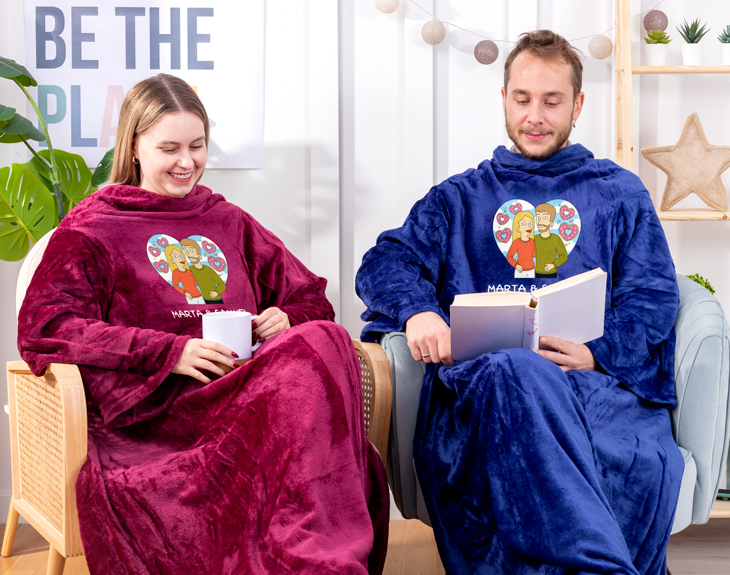 ¿Alguna vez te has preguntado cómo serías si fueras un dibujo animado? Con estas batamantas lo conseguirás. ¡Porque son personalizables! Podrás crear a estos avatares en nuestro diseñador, hay un montón de rasgos y accesorios diferentes para que os podáis representar a la perfección. ¡Quedará genial! Sin duda, estas batamantas personalizadas con diseño "Pareja Cartoon" se convertirá en el regalo perfecto para sorprender a tu pareja, ya sea para San Valentín, vuestro aniversario o incluso para un cumpleaños. Es perfecta para que os la pongáis juntos y disfrutéis de un maratón de pelis o simplemente para descansar en el sofá. ¡Es súper calentita! Es la combinación perfecta entre una manta y una bata. Personalizar estas batamantas es muy sencillo. El primer paso a seguir consiste en añadir el producto al carrito y entrar al área de personalización. Una vez ahí, ya puedes crear a este avatar Simpson como tú quieras. Pronto estará perfecto y listo para regalar. ¡Será un original regalo para fans de los Simpson! Cabe destacar que las batamantas son de talla única. Material: poliéster. ¿Qué es una batamanta? Es una prenda de abrigo y cuerpo entero abierta por detrás para estar en casa. Cuenta con las mangas y cuello típicos de una bata para poder llevarla cómodamente sin perder movilidad. Pero además, cuenta con el tacto acolchado y la amplitud de una manta, por lo que puede echarse cómodamente por encima para arroparse en el sofá al tener la zona de la espalda al descubierto y cubrir en profundidad la parte delantera del cuerpo.