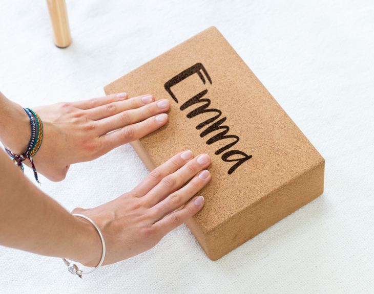• Bloque de yoga ecológico personalizado (23 cm x 15 cm x 7,5 cm). • Tarjeta Recordatoria.