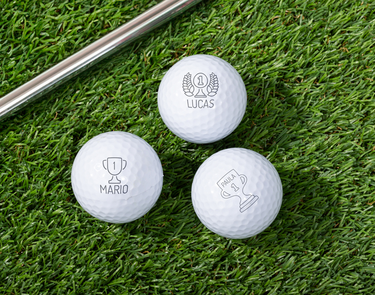 El golf es un deporte donde la puntería y la paciencia son los mayores secretos para triunfar. Pero nosotros tenemos otro... ¡nuestras propias bolas personalizadas! Es el regalo ideal para sorprender a esa persona apasionada por este deporte o para terminar de completar tu equipo. Cuando tengas tus palos y tus pelotas personalizadas, estrás listo para jugar. Estas bolas son el regalo más original para dejar sin palabras a esa persona que juega siempre al golf. Será el centro de atención de todo el campo porque estas pelotas son lo más y todo el mundo se fijará en ellas. ¡Es el mejor regalo del mundo! Para personalizar estas bolas, accede a nuestro diseñador y completa el diseño con trofeos que más te guste con el nombre que tú quieras. Así de sencillo es tener tus propias pelotas personalizadas para practicar este deporte tan guay. Peso: 40 gramos.