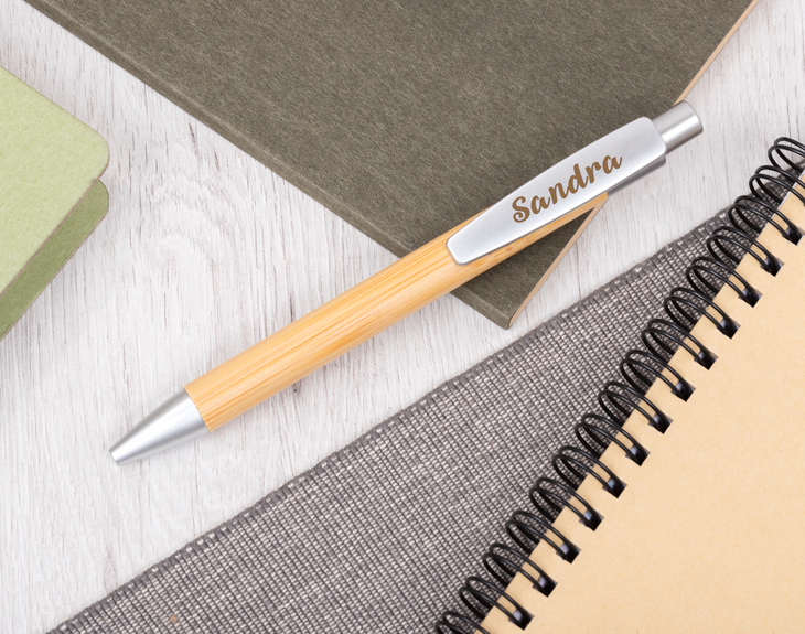 Un bolígrafo personalizado para un auténtico amante de la escritura. Si quieres hacer un regalo a tu profesor, o a una persona que sea de referencia para ti, dinos su nombre y te personalizaremos al máximo este bolígrafo. Es un regalo original que le hará recordarte durante mucho tiempo. ¡Comienza a escribir una bonita historia! Material: Bambú.