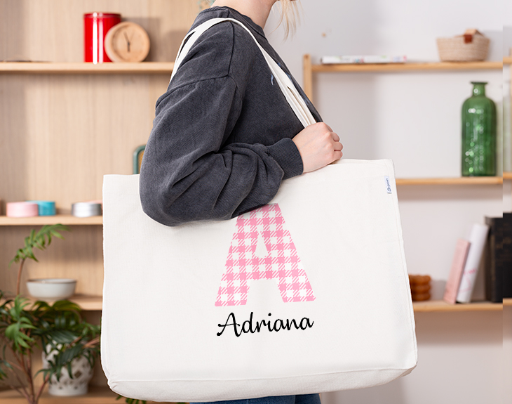 A la hora de organizar las vacaciones siempre tenemos que llevar muchas cosas, sobre todo en nuestro día a día en la playa. Toalla, protector solar, libro... ¡Todo ello cabrá en esta bolsa beige personalizada! El accesorio perfecto para hacer que la rutina durante el verano sea mucho más llevadera. Y es que un bolso con diseño de alfabeto Vichy será la clave para sorprender a tu madre, hermana, amiga o novia durante estas vacaciones de verano. El bolso cuenta con unas dimensiones de 50 centímetros de largo y 36 centímetros de alto, lo que lo hace perfecto para guardar cualquier cosa que necesites a la hora de desconectar. Este regalo original para el verano está protagonizado por nuestro alfabeto Vichy. ¡Escoge la inicial que quieras y nosotros la plasmaremos en el bolso junto al nombre! Añade el producto al carrito y elige la letra que más te guste entre los diferentes colores disponibles. Dimensiones: 50 cm de largo x 36 cm de alto x 13 cm de ancho. Gramaje: 280 g/m². Material: algodón (50%), algodón reciclado (30%) y poliéster reciclado (20%).
