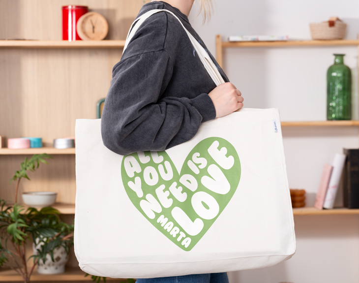 La toalla, la crema solar, un libro por si te aburres, ropa de cambio... ¡A veces ir a la playa se convierte casi en una mudanza! Llevar todas esas cosas no es nada fácil, pero con nuestra Bolsa beige de playa personalizada All you need is love te parecerá de lo más fácil y, encima, dejarás a todos boquiabiertos con su divertido diseño personalizado. Este práctico bolso grande personalizado cuenta con todo el espacio que necesitas para guardar casi cualquier cosa. ¡Se acabó tener que llevar mil cosas en la mano de camino a la playa! Gracias a sus largas asas, podrás colgar tu bolso del hombro con toda comodidad y tener las manos siempre libres. Además, su fresca tela de algodón reciclado combinará genial con cualquier look que escojas gracias a su suave tonalidad beige. Sin embargo, nada supera a su divertido y romántico mensaje personalizado con tu nombre. Y es que, ¿qué sería de nosotros sin amor? Escoge entre las diferentes opciones de diseño (en varios colores) y agrega tu nombre o el de la persona a la que quieres sorprender en la plantilla. ¡Será un regalo original único! El resultado lo imprimiremos en tu nueva y flamante bolsa de playa, listo para dejar boquiabiertos a todos los que la vean. Este verano, que nada pare tu ritmo, guarda todas tus cosas en este regalo perfecto para el verano y ¡serás la envidia de toda la playa! Dimensiones: 50 cm de largo x 36 cm de alto x 13 cm de ancho. Gramaje: 280 g/m². Material: algodón (50%), algodón reciclado (30%) y poliéster reciclado (205).