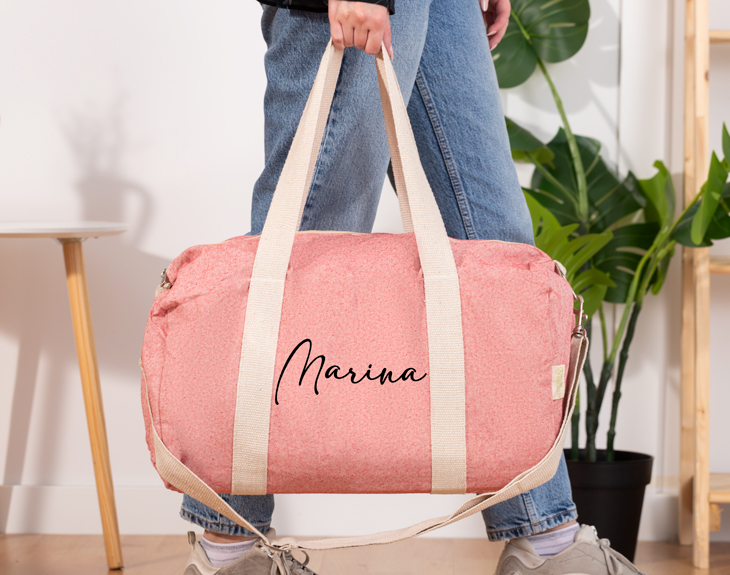 ¿Conoces a una persona que es la más deportista de tu círculo? ¿Siempre va cargada con todo el uniforme completo del gimnasio? Si quieres sorprenderla con un regalo único y de lo más útil, no se nos ocurre un mejor objeto que nuestra bolsa de deporte personalizada. ¡Cabrá de todo y será mucho más fácil de llevar! Y es que esta bolsa roja con diseño de texto o nombre tiene todo el espacio que necesitas para los días más deportivos. Cuenta con un compartimento principal con cierre de cremallera, para que nada se pierda. Además, cuenta con dos asas en los laterales y una cinta para poder colocarla en el hombre, con cierre de mosquetón. ¡Será mucho más fácil llevarla a todas partes! ¿Sabéis qué es lo mejor que tiene este regalo original para deportistas? ¡Que podrá ir personalizado con el nombre de esa persona especial! Lo único que le hará falta será la personalización. Añade la bolsa al carrito y accede al área de diseño, donde podrás escribir el nombre que quieras clicando sobre el cuadro de texto. Altura: 26 cm. Ancho: 24 cm. Largo: 49 cm. Material: algodón 100% reciclado. Gramaje: 275 g/m2.