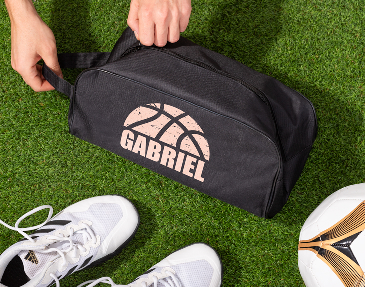 ¿Tu hijo es el mejor jugador de baloncesto? ¿Tu pareja es un desastre a la hora de preparar su material para los entrenamientos? Esta bolsa para zapatillas personalizada es justo lo que necesitas para guardar las deportivas antes de cada partido. ¡Así nunca se te olvidarán y siempre sabrás donde están! Si conoces a alguien que es el mejor encastando en todos los partidos de su equipo, esta bolsa para deportivas con diseño de baloncesto es justo lo que necesita. ¡Es chulísima! La bolsa es de color negro, cuenta con un cierre con cremallera, y un asa en la parte lateral para que puedas llevarla a cualquier parte. Además, este original regalo para deportistas será la mejor sorpresa para ese jugador de baloncesto que tienes en tu vida. ¡Esta bolsa cuenta con un diseño chulísimo basado en este deporte! Añade el producto al carrito para personalizarlo en el interior del diseñador. ¡Solo tendrás que poner el nombre o el texto que quieras en el diseño! Medidas: 34,5 x 16 x 14 cm.