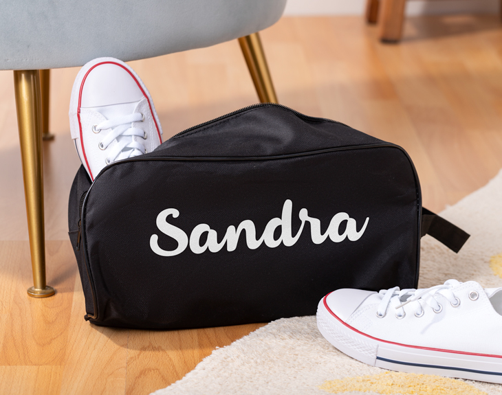 Si hay algún deportista por aquí, ¡tenemos el accesorio perfecto para vosotros! Esta bolsa para zapatillas personalizada es ideal para todas aquellas personas que necesitan llevar varios pares de zapatos encima. Si sois de los que después del trabajo vais a entrenar al gimnasio o a realizar cualquier deporte, esta bolsa es genial para llevar tus zapatillas de deporte y después guardar el otro par que lleves. ¡No pararás de utilizarla! A veces no paramos en todo el día y en estas ocasiones, casi no tenemos tiempo de organizarnos. Por eso, si eres de los que después del trabajo se va corriendo al gimnasio o a correr y no te da tiempo a pasar por casa, esta original bolsa es perfecta para ti. Podrás llevar tus zapatos para hacer deporte y después meter en ella los que has llevado el resto del día. Es una buena manera de tener todo ordenado y mantenerlos alejados de la ropa para evitar que se manche. Y si quieres que esta bolsa sea única, podrás personalizar este producto a tu medida. Añade el producto al carrito, entra en el apartado de personalizar y solo tendrás que poner el nombre que quieras. Así, todo el mundo sabrá a quién pertenece esta bolsa. Es perfecta para cualquier situación: ir al gimnasio, a correr, para llevarla de viaje... ¡Es el mejor regalo! Medidas: 34,5 x 16 x 14 cm.
