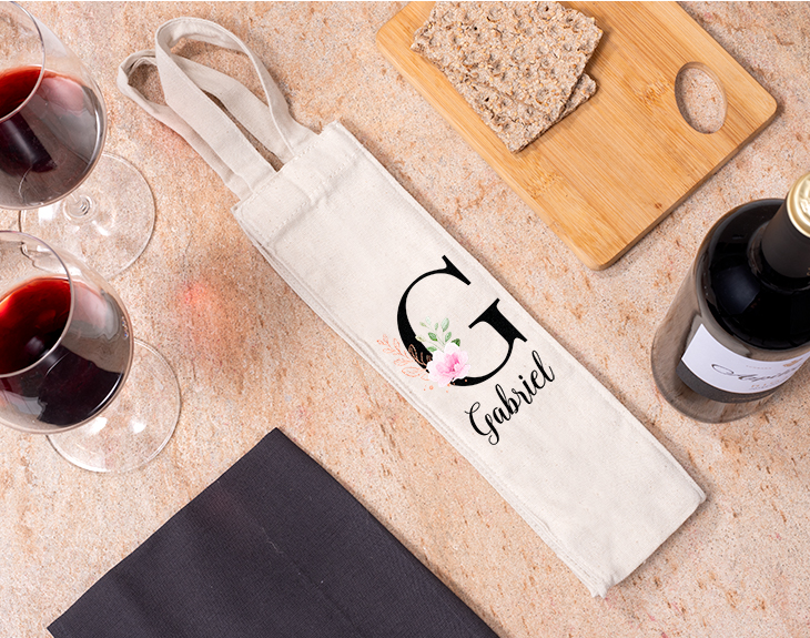 ¿Se acerca una ocasión especial y todavía sin regalo? ¡Tenemos la opción que te salvará la vida! Se trata de una preciosa bolsa de tela para botellas personalizada con la inicial y el nombre de esa persona. Además, tiene un diseño floral de lo más elegante, la mejor presentación para regalar una botella de su bebida favorita. Si quieres hacer el regalo completo, te recomendamos escoger la opción de añadir una botella de vino Azpilicueta, o una de cava Jaume Serra, ¡con ambas tienes el acierto asegurado! Ya sea para un cumpleaños, un aniversario o una cena de Navidad, ¡quedarás genial en cualquier situación! Además, una vez terminada la bebida podrá reutilizar la bolsita y usarla para transportar su botella favorita. Y no solo eso, también es genial para decorar su cocina, salón o minibar, ¡así le dará un toque único y muy personal! Medidas: 41 x 9 centímetros.