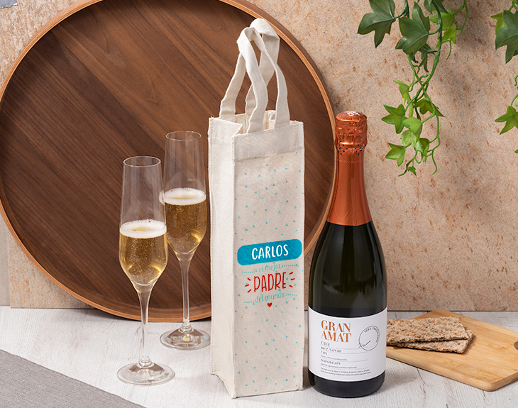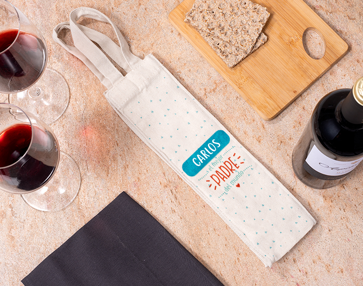 ¿Se cerca el cumpleaños de tu padre y este año quieres quedar como un rey con su regalo? ¿Tenéis una ocasión especial que celebrar y buscas una forma de hacerla inolvidable? Con nuestra bolsa de tela para botella personalizada Mejor padre del mundo, tendrás la mejor presentación para sorprenderle como la ocasión lo merece. Esta preciosa bolsa se personaliza con el nombre de tu padre y, puedes comprarla de forma individual, para dar una presentación exquisita a su botella de vino favorita, o combinada con nuestra botella de vino Azpilicueta o nuestra botella de cava Jaume Serra. Sea como sea, seguro que la sorpresa será mayúscula y, cuando se acabe su bebida favorita, ¡podrá conservarla como recuerdo! La bolsa está fabricada en tela de canvas en tono natural. Cuenta con costuras reforzadas para mantener la forma y dos prácticas asas para poder transportar la botella que guardes en ella cómodamente. La bolsa tiene un tamaño de 41 x 9 centímetros y, aunque está pensada para presentar botellas de vino, cava o champán, realmente serviría para cualquier botella que coincida con estas medidas. Este producto convierte una simple botella en un regalo espectacular, lleno de emoción y estilo. Junto a la frase “El mejor padre del mundo”, irá colocado el nombre de tu padre, para que no quede duda de quien es el mejor. Al hacer el pedido, pulsa en el botón + para anotar el nombre que necesites y nosotros trasladaremos el resultado directamente a la tela de tu nueva bolsa. Hazte con este regalo original y deja sin palabras a tu padre, ¡la persona más importante del mundo! Quedarás genial si apareces con esta preciosa bolsa personalizada acompañada de un buen vino, ya sea en su cumpleaños o en el día del Padre. ¡Seguro que le dejarás sin palabras! Medidas: 41 x 9 centímetros.