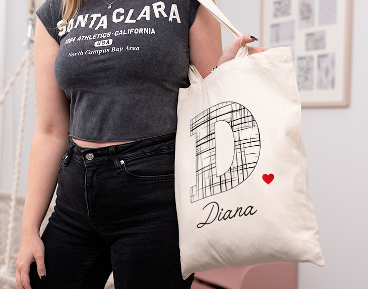Seguro que tú también conoces a esa persona que siempre lleva consigo su bolsa tote, si quieres tener un detalle con esa persona, sorpréndela con nuestra bolsa de tela personalizada con diseño "Alfabeto Sketch". Es ideal para que pueda guardar todas sus pertenencias. ¡Cabe de todo! Esta bolsa de tela se convertirán en el regalo perfecto para un cumpleaños, un amigo invisible o para cualquier fecha importante. Lo más especial de esta bolsa es que es personalizable. Podrás escoger una letra de nuestro alfabeto y escribir el nombre que tú quieras. Imagina la ilusión que le hará a esa persona recibir su propia bolsa de tela, le encantará. Personalizar nuestra bolsa tote es súper sencillo. El primer paso a seguir consiste en añadir el producto al carrito y entrar al área de personalización. Una vez ahí, ya puedes escoger la inicial del alfabeto y escribir el nombre de esa persona tan especial. Pronto estará perfecta y lista para regalar. ¡Será un original regalo!
