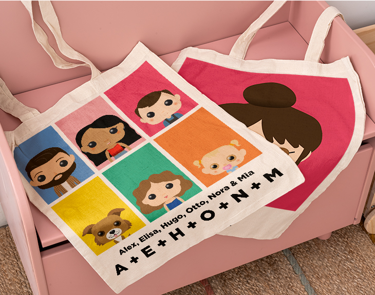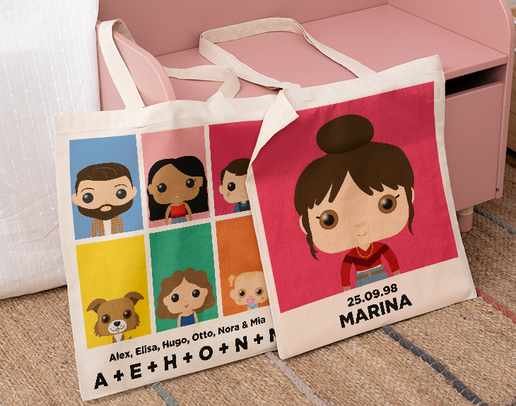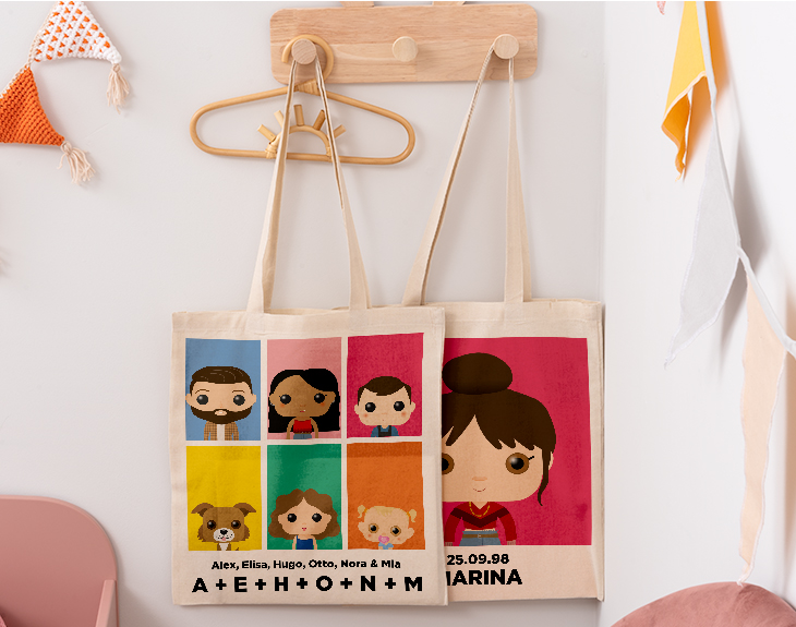 Si cada vez que sales de casa, siempre llevas tu bolsito a punto de reventar lleno de cosas, deja de hacerle sufrir y hazte con esta bolsa tote “Tinok Pop”. Gracias a esta bolsa, podrás llevar contigo todo lo necesario, desde la cartera, las llaves de casa, hasta una sudadera por si refresca o la comida. ¡Cabe de todo! Lo más especial es que, tú eres el que diseña esta bolsa de tela “Tinok Pop”. Puedes elegir entre diseñar mínimo un personaje o seis como máximo. ¡Podrás crear tu propia familia Tinok! Tienes para elegir entre un montón de rasgos y accesorios, seguro que encuentras los que te representen. Esta bolsa también se puede convertir en un regalo original para esa persona que pasa mucho tiempo fuera de casa, ideal para que siempre salga con todo lo necesario. Personalizar esta bolsa tote es súper sencillo. El primer paso a seguir es añadir el producto al carrito y entrar al área de personalización. Una vez ahí, podrás diseñar tu propio avatar Tinok Pop desde cero. ¡Ya verás que divertido! Pronto lo tendrás perfecto y listo para regalar.